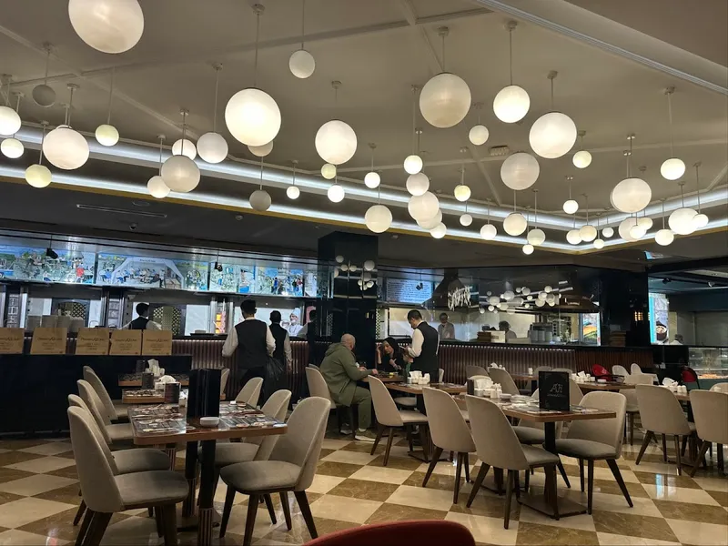 Metro çevresi canlı kafe ve restoran bölgesi.